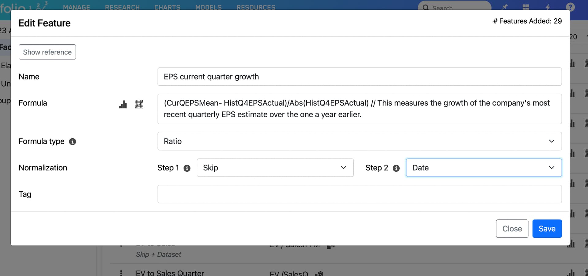 4.) Inability to download the actual normalized feature set used to fit the AI Factor model. This limits the user's ability to test and understand their model before putting it into a Live Strategy.