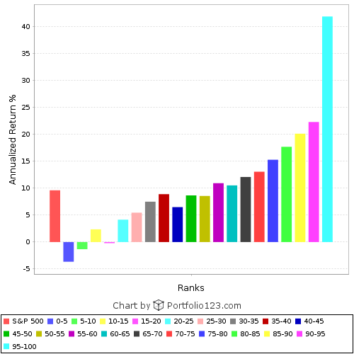 If a ranking system gives you very good results with 150 stocks over a long time period, it’s likely that the top five to fifteen stocks will perform best OOS. In other words, just because you’re simulating a huge number of securities doesn’t mean that they’ll all perform just as well–the top-ranked stocks still have a strong advantage.