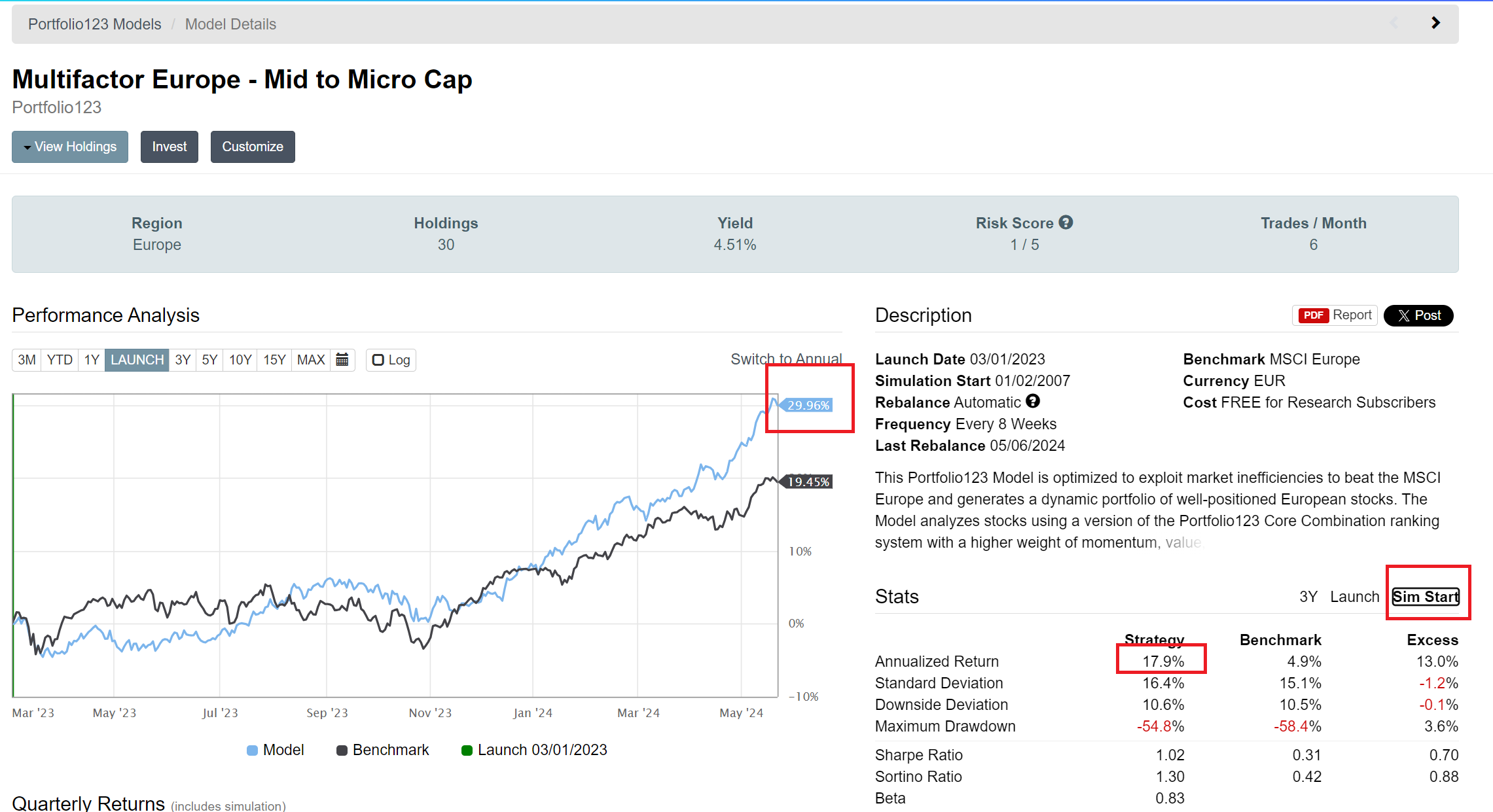 About 26% this year. Been increasing my positions slowly over the year, since Mars I have had about 95% of the capital in that account in the market. I guess on average 40% of my stocks are European. And I do my best to quantify my strategies, so I think I’m holding way more stocks than the average P123 investor, >135
