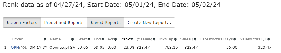 For example, OPN:POL, the Q3 sales in 323.47 and Q4 sales is 759.10. The Q4 report was published on 29/04/2024.