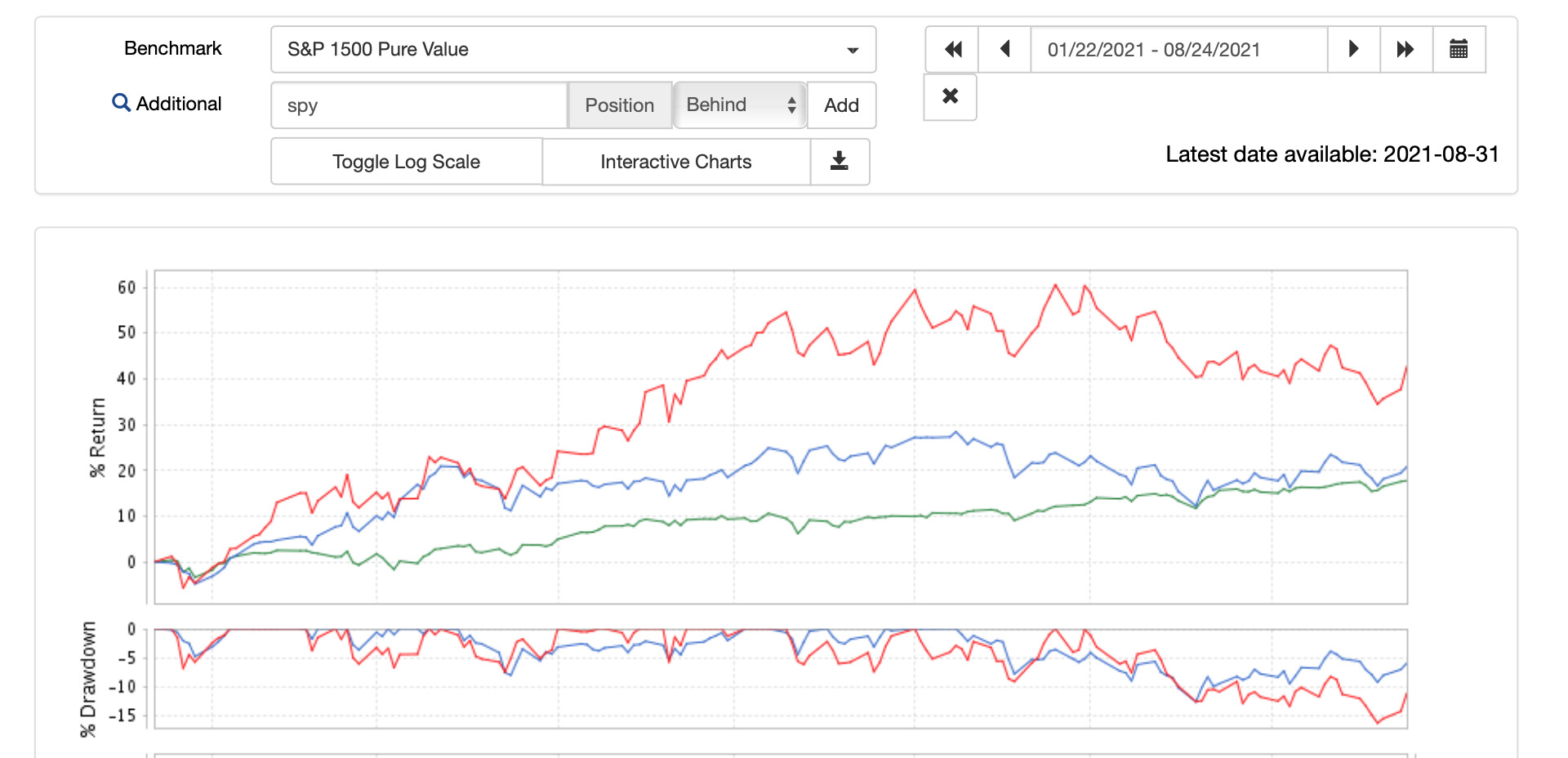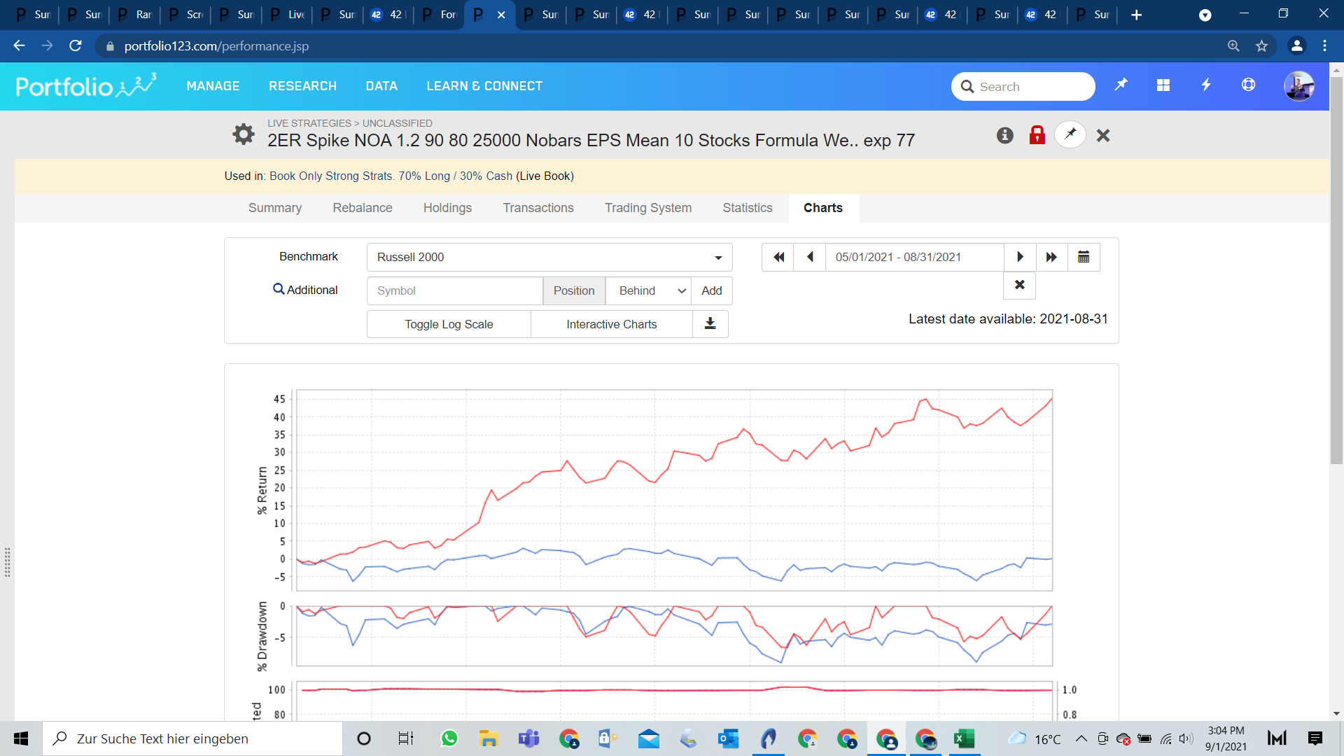 I think this may be pretty good. For sure, I would have to prove to myself that there is a problem with the sim now. I stopped at 8/24/21 because I withdrew cash from the port after that date which affected the port’s buying very significantly. But I have been adding and removing cash throughout. That and Force Positions into Universe should guarantee that there would be some difference between the sim and port.