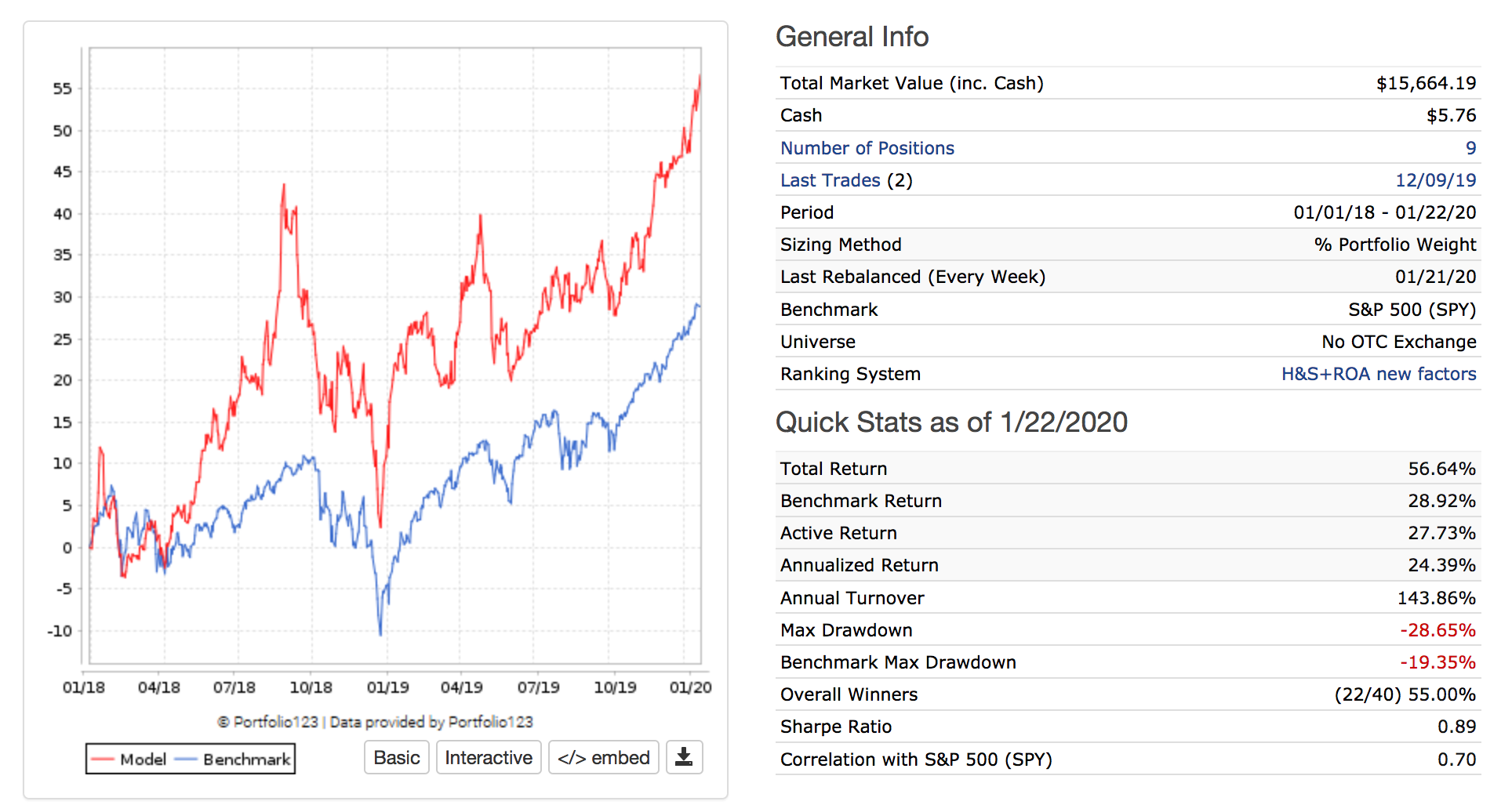 Let’s say it’s a 10 years period, the Annualized return in the sim is 25% in monthly rebalance, and if I change the rebalance to weekly, the simulation gets an Annualized return of 28%.