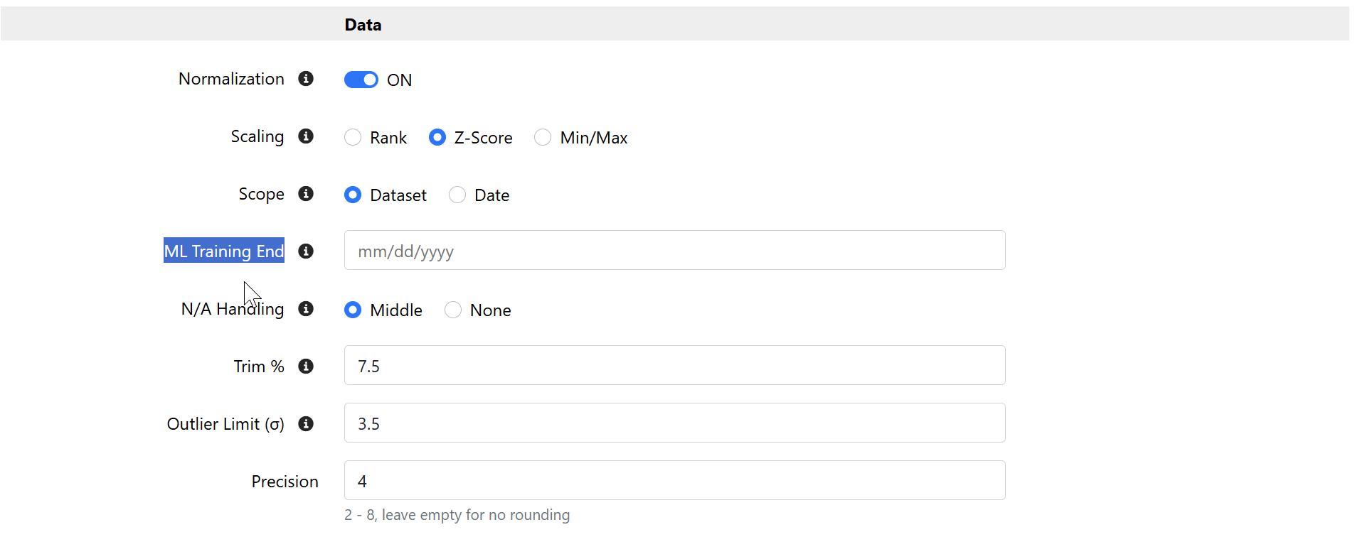 I want to be able to download the latest date(s) of data, but have the data Z-score or Min/Max Normalized over a longer period (Normalized by Dataset).