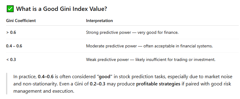 I'm wondering if other users can say what range of values they are gettingfor Gini, etc. When I ask chatGPT: