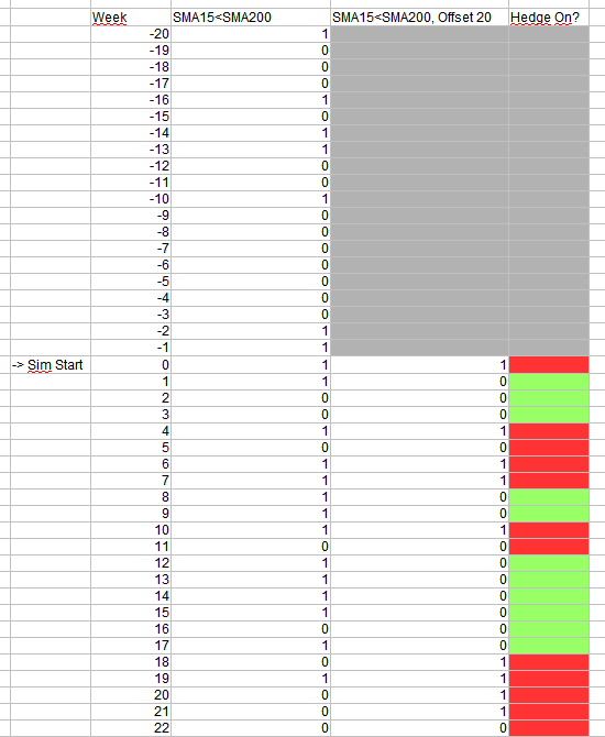 Sorry, I don’t get how the exit rule works. Wouldn’t this one trigger at any occasion where 100-days lagged SMA15<SMA200 = true? So if the hedge checks for the exit rule in week 2 of the simulation, wouldn’t it just trigger an exit (or not) based on 100 days prior SMA’s?