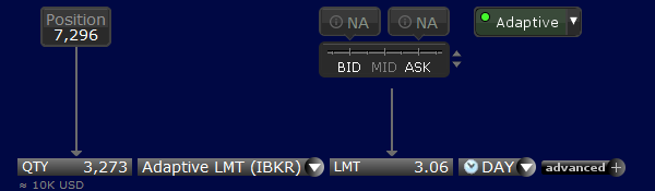 Don't know about P123. I trade all my strats manually. I use adaptive for very messy illiquid tickers. I place the limit at mid price with patient setting and adjust it higher from time to time if there is no execution. The limit just neuters the algo. It then tries to sneak small suborders into the orderbook within the confines. But you will get a LOT of trades, so imo it makes only sense for really illiquid stocks with messy orderbooks or exchanges with shady marketmakers where don't want to show all your cards.