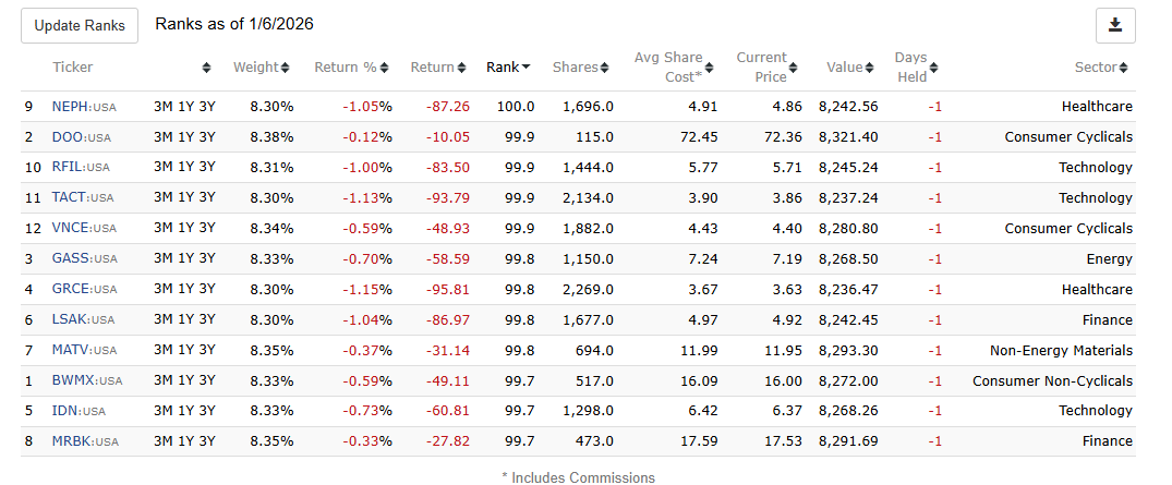 Simple question: Is it possible to fix this? Just from a modeling perspective, there should be a way to align Live and Simulated strategies so that they both use the same Ranking data. The most obvious solution is to have an option for Simulated strategies to use the Monday AM ranking instead of Saturday. The other would be for Live strategies to have an option to use Saturday ranking. Either way it ensures that both live and simulated using the same ranking data for trades.