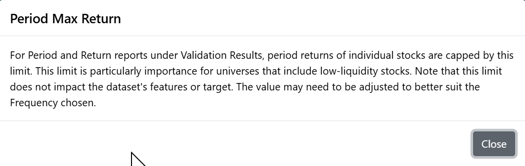 When doing a rank performance test and AI factor training, we can set a max return. A period, is that the rebalancing/sampling period (one week)?
