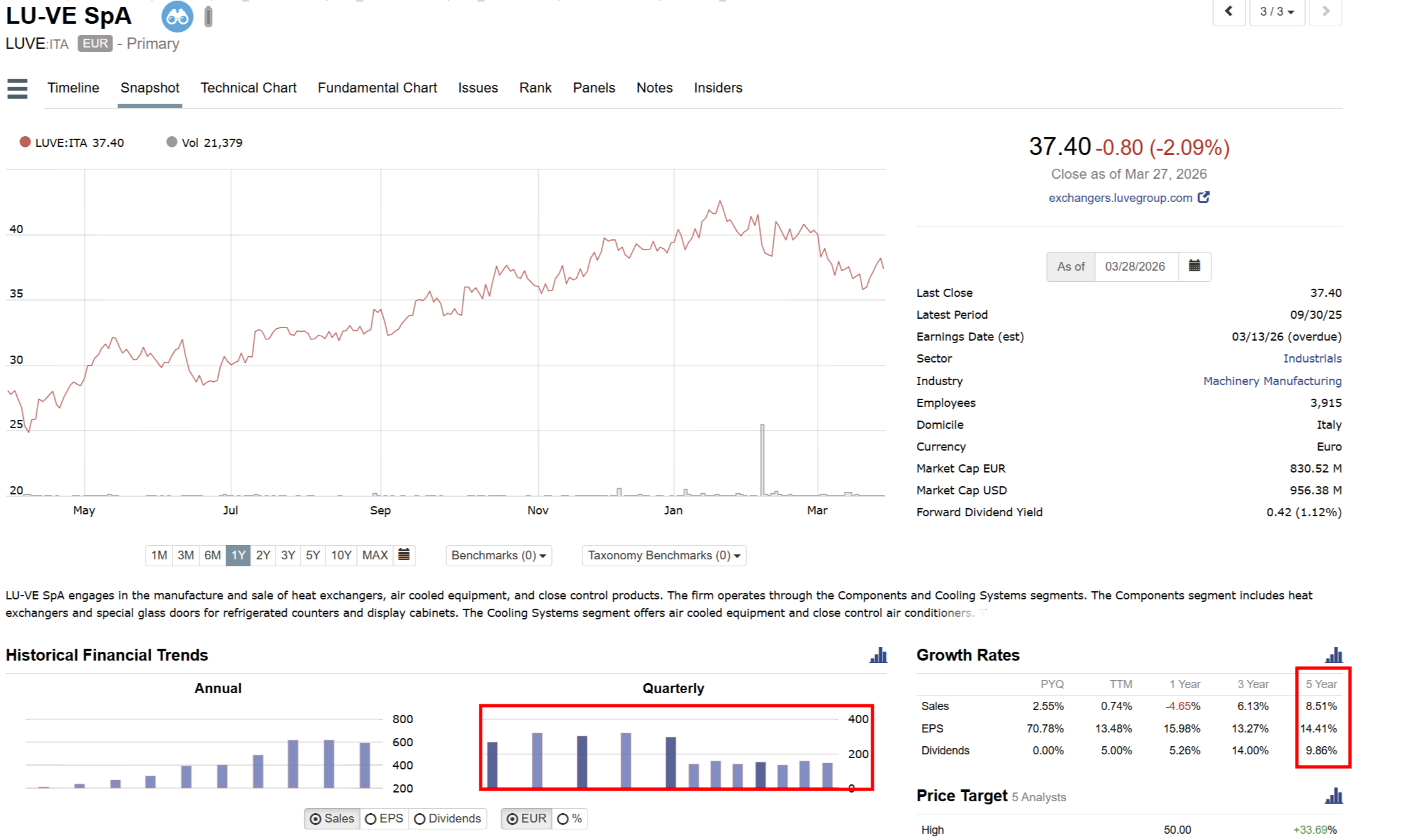 Below is an example of a company, LUVE:ITA, that switched to quarterly reporting in 2024. You can see the gaps between quarters cut in half, TTM growth rates evaluate well, as well as long term growth rates.
