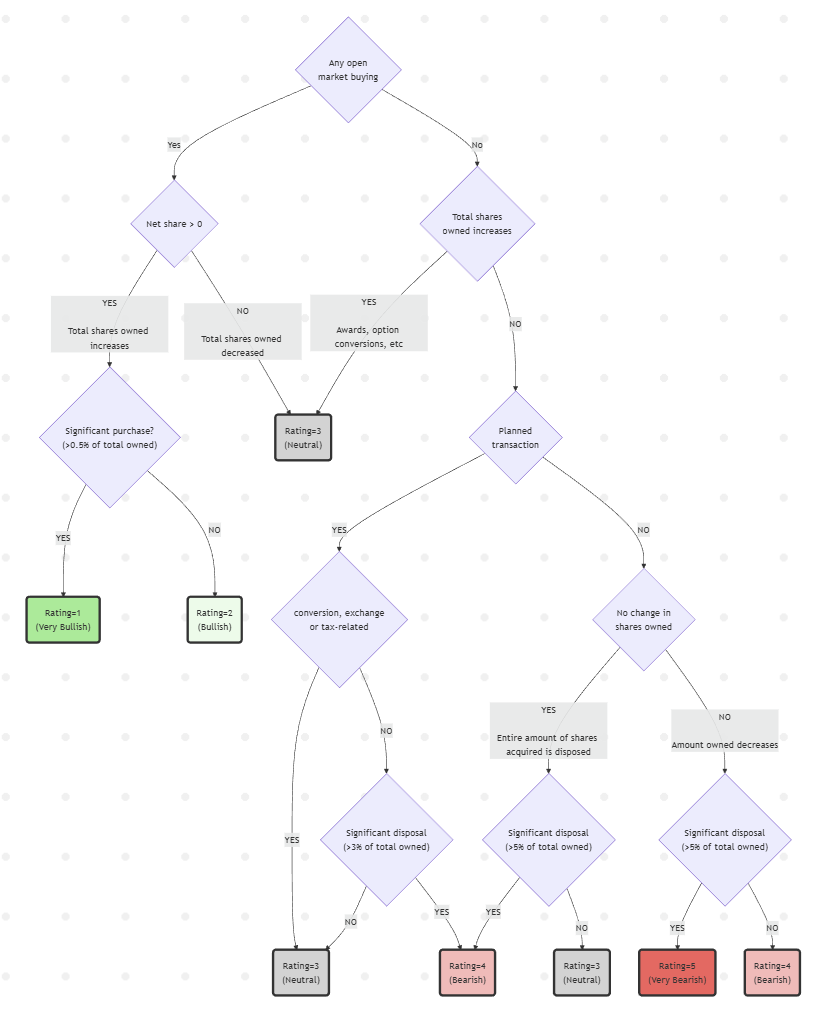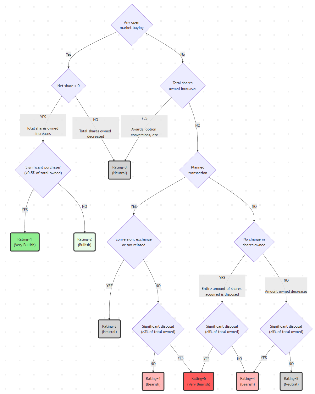 B -->|NO<br><br>Total shares owned decreased| R3a("Rating=3<br>(Neutral)"):::NE