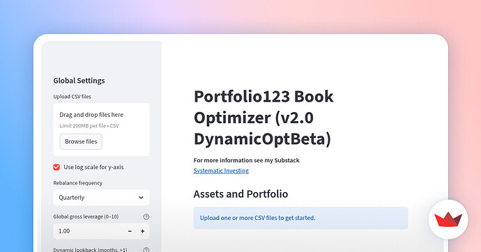 Your intuition is kind of right. Dynamic Weight Optimization is often underwhelming. But dynamic gross leverage management based on a vol target based on a fixed (or dynamic) relative allocation is imo promising. Added both + rolling charts to the v2.2 of the app.