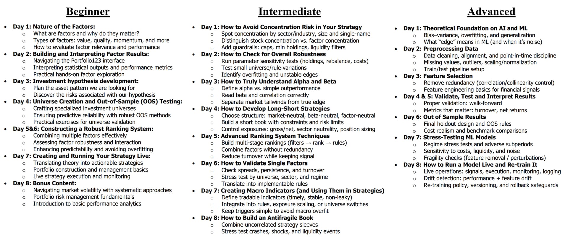 I’m sharing the updated 2026 curriculum for the quant investing coaching program, built specifically around Portfolio123 workflows and real-world factor investing.