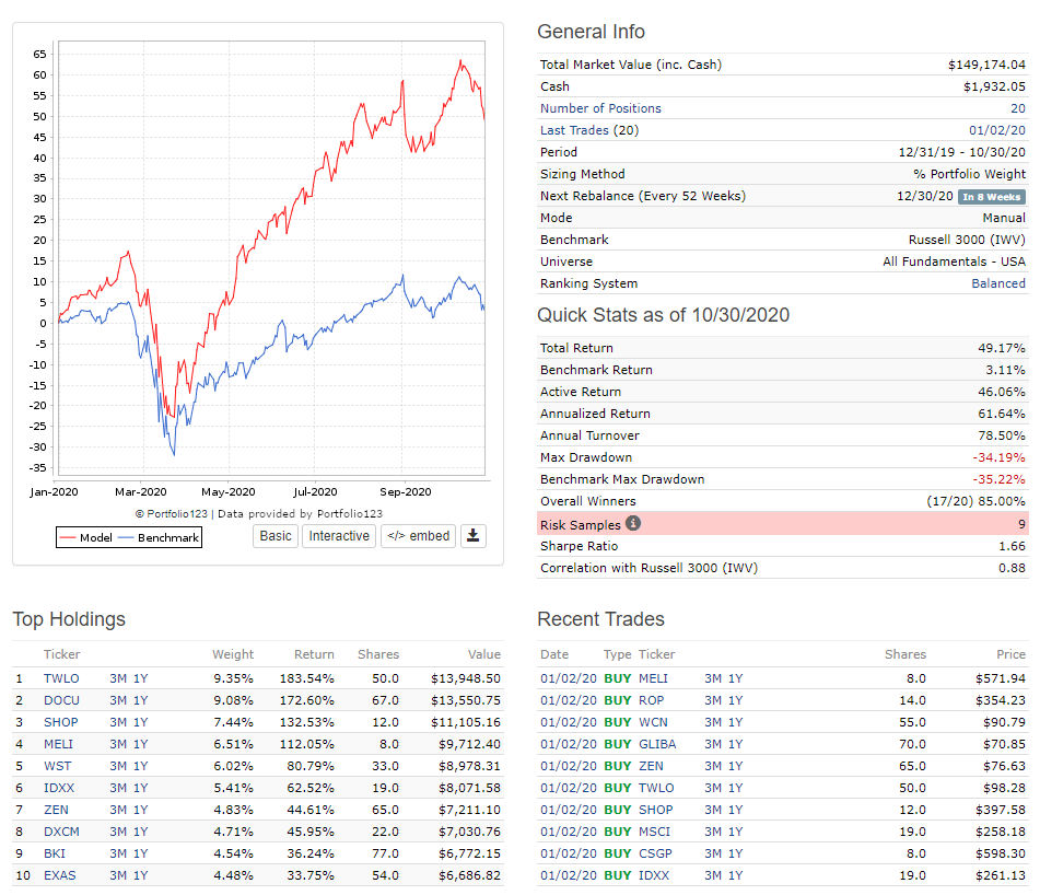 I believe p123 should have manual stock picks for quarters and yearly strategies for paid service to attract stock picking experts and with reasonable amount of liquid stocks as i am running my P123 competition free model with 20 stocks. I am very successful in 2017 35%+ return, 2019 40%+ return this year 2020 60%+
