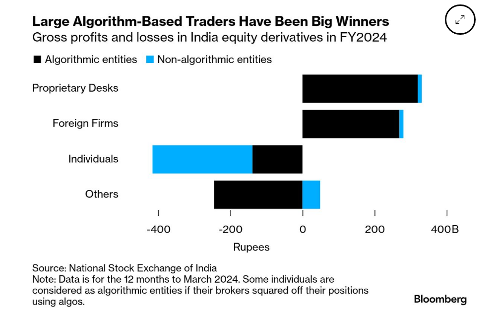 The study also finds that large algorithm-based traders running proprietary desks and foreign firms are big winners while individuals who trade using algorithms lost money (the losses are less than non-algorithms individuals).