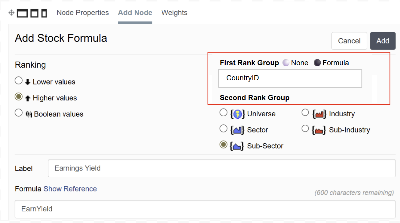 We can have two "rank groups", with the first being a formula you enter. The second would be the existing industry & sector choices.