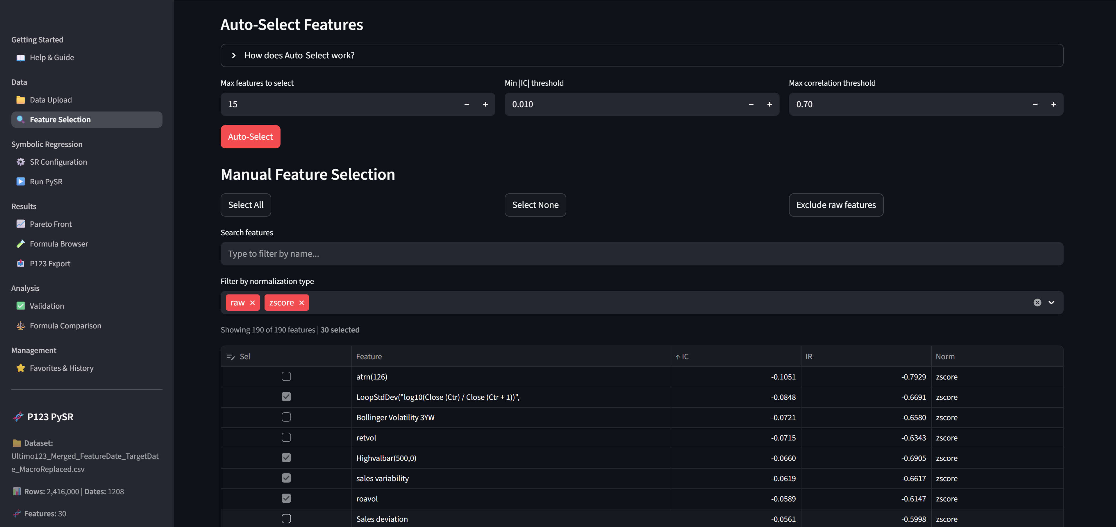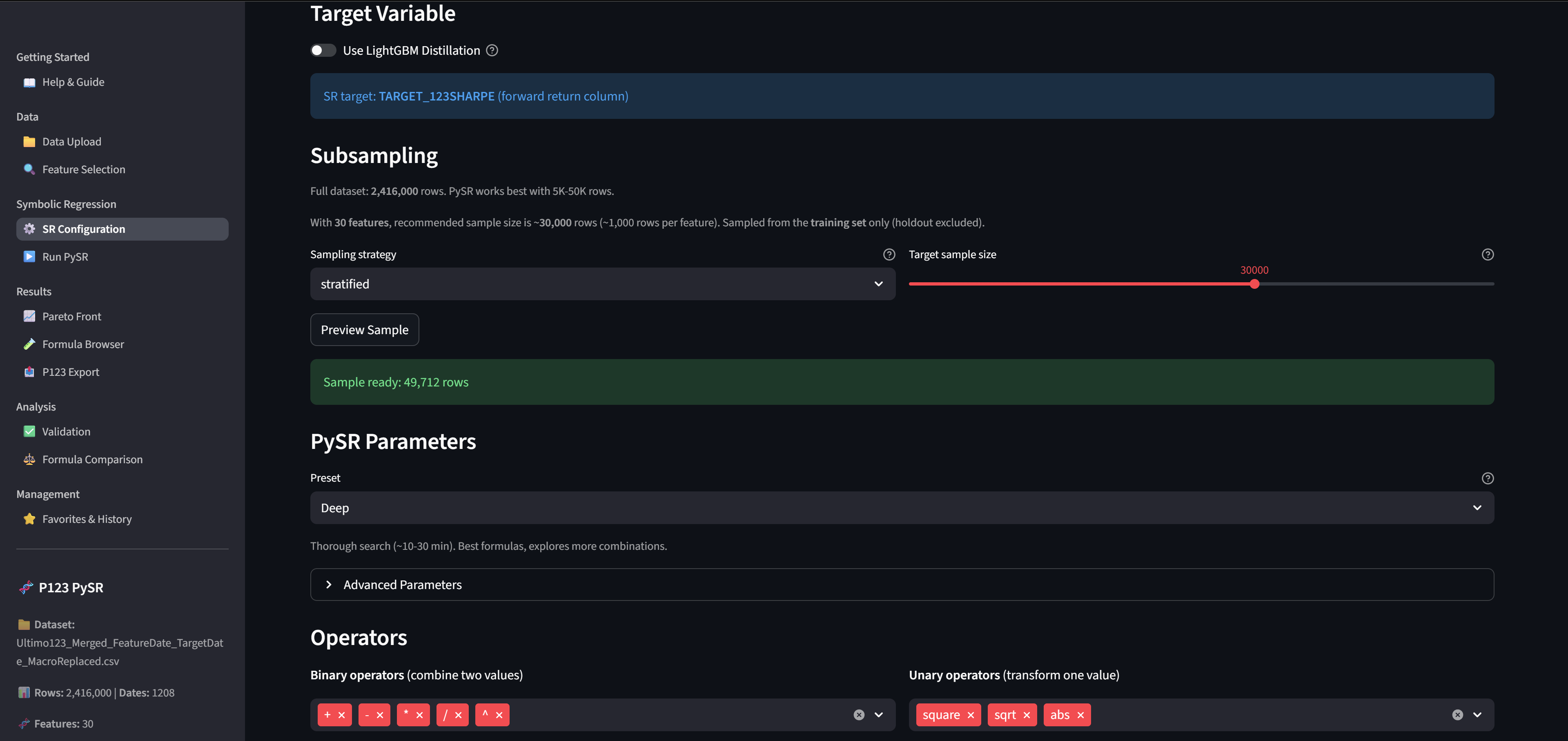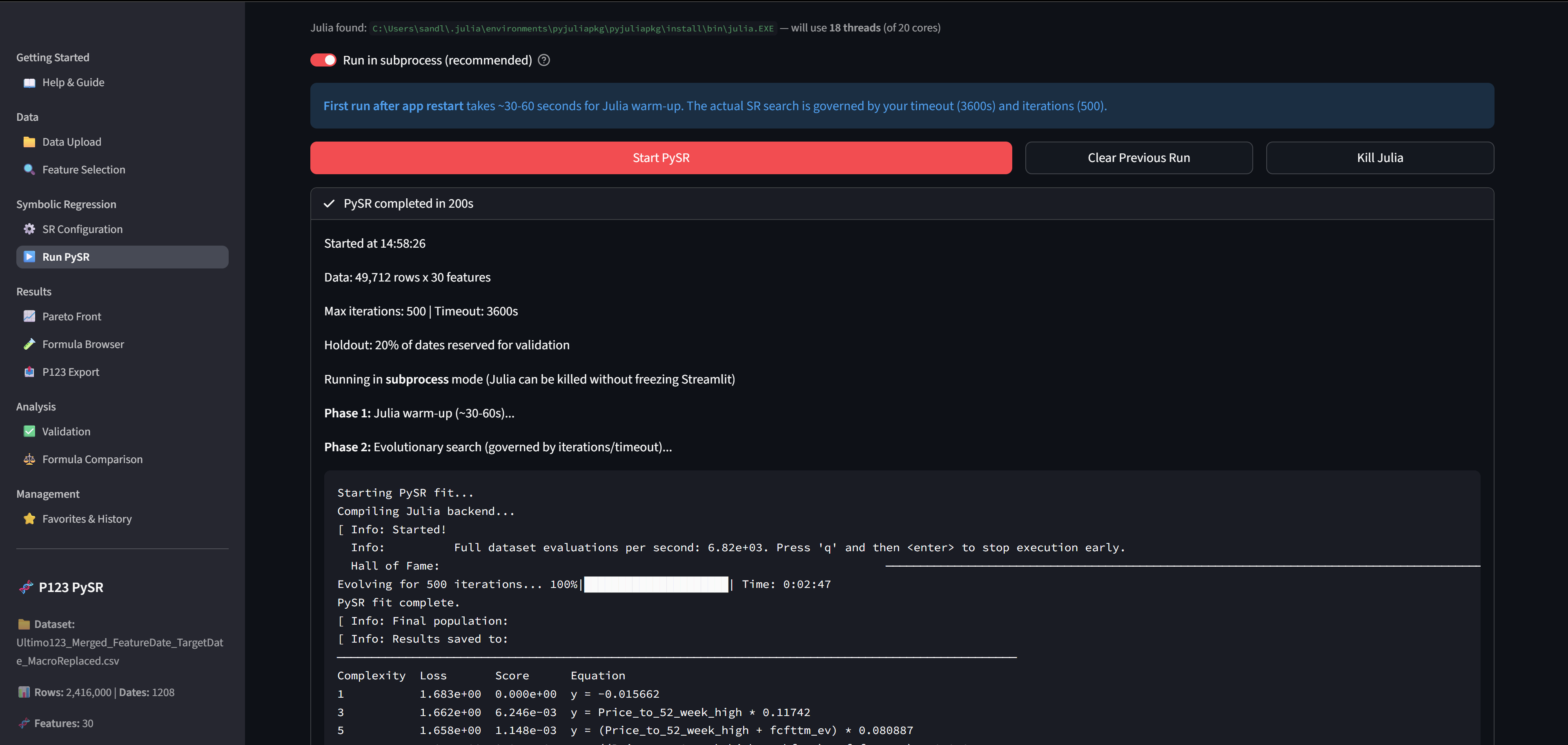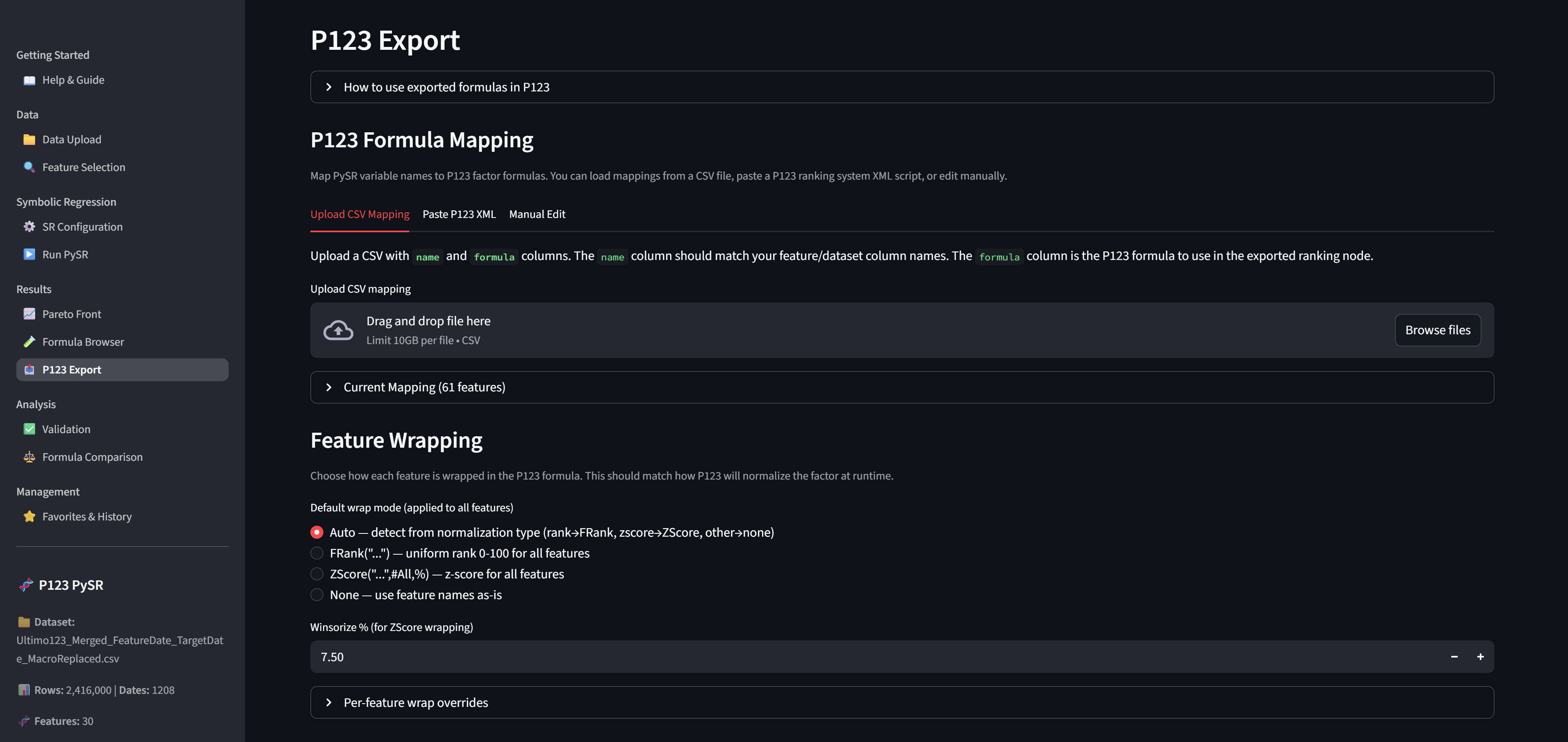 P123 PySR - Symbolic Regression Factor Discovery for Portfolio123