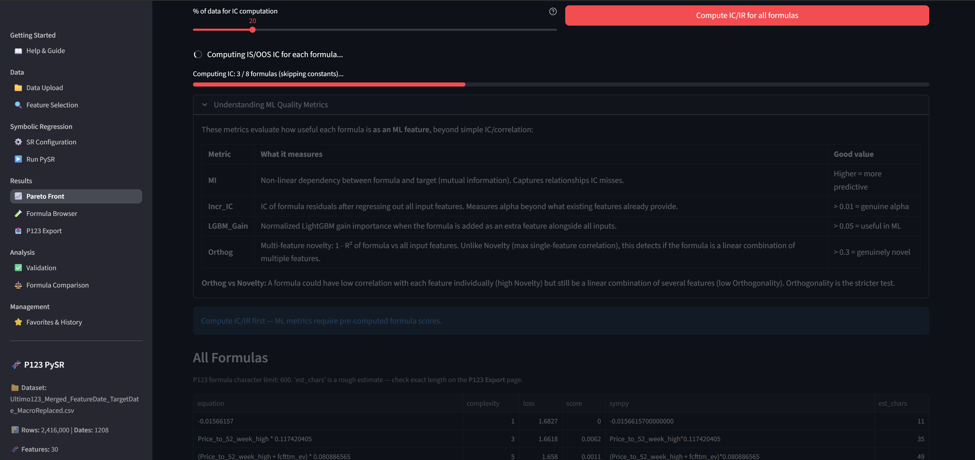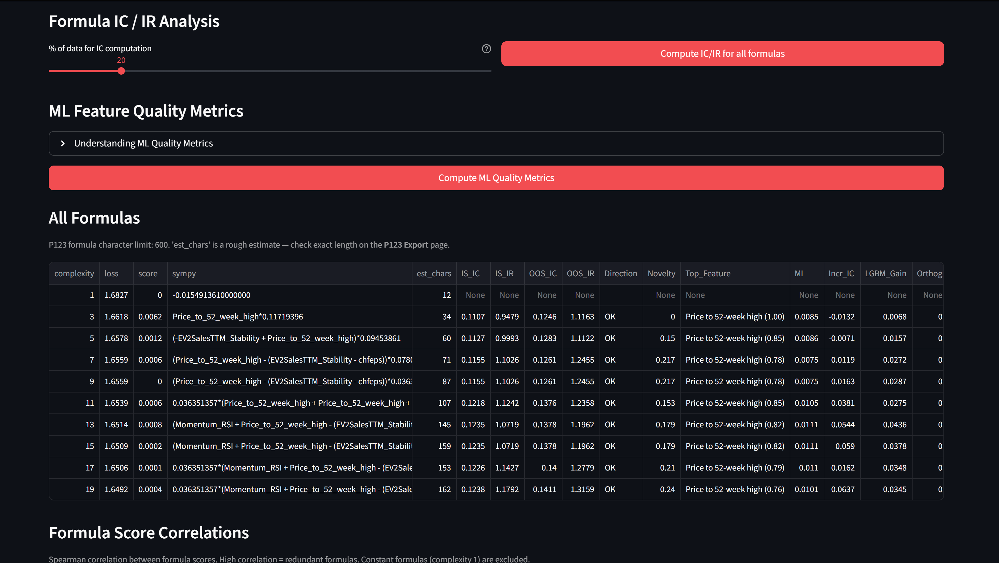 I came across a machine learning concept that sounded like a perfect fit to generate new factors for P123, Symbolic Regression. I spent a few evenings testing the concept and decided to make an app and share it with the community, I hope you find it useful. The app will generate formulas that can be pasted directly in to your ranking system or AI Project.