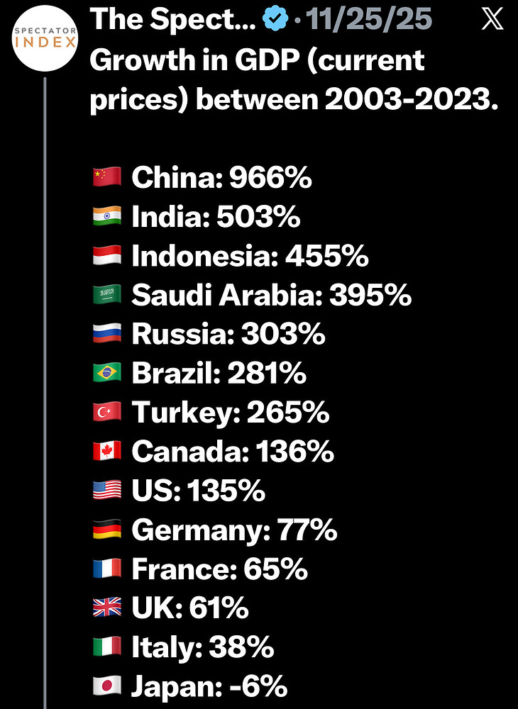 Growth helps create prosperity, yes. It is also true that countries with a smaller capital base or lower starting technological adoption can grow significantly faster. It is a good addition to the above. Also, different tax policy and investment choices will lead to different outcomes for nations that start at similar points. Growth is a continuum dependent on a nation’s choices. The obvious examples would of course be North Korea vs South Korea or Singapore vs Cuba or Chile vs Venezuela