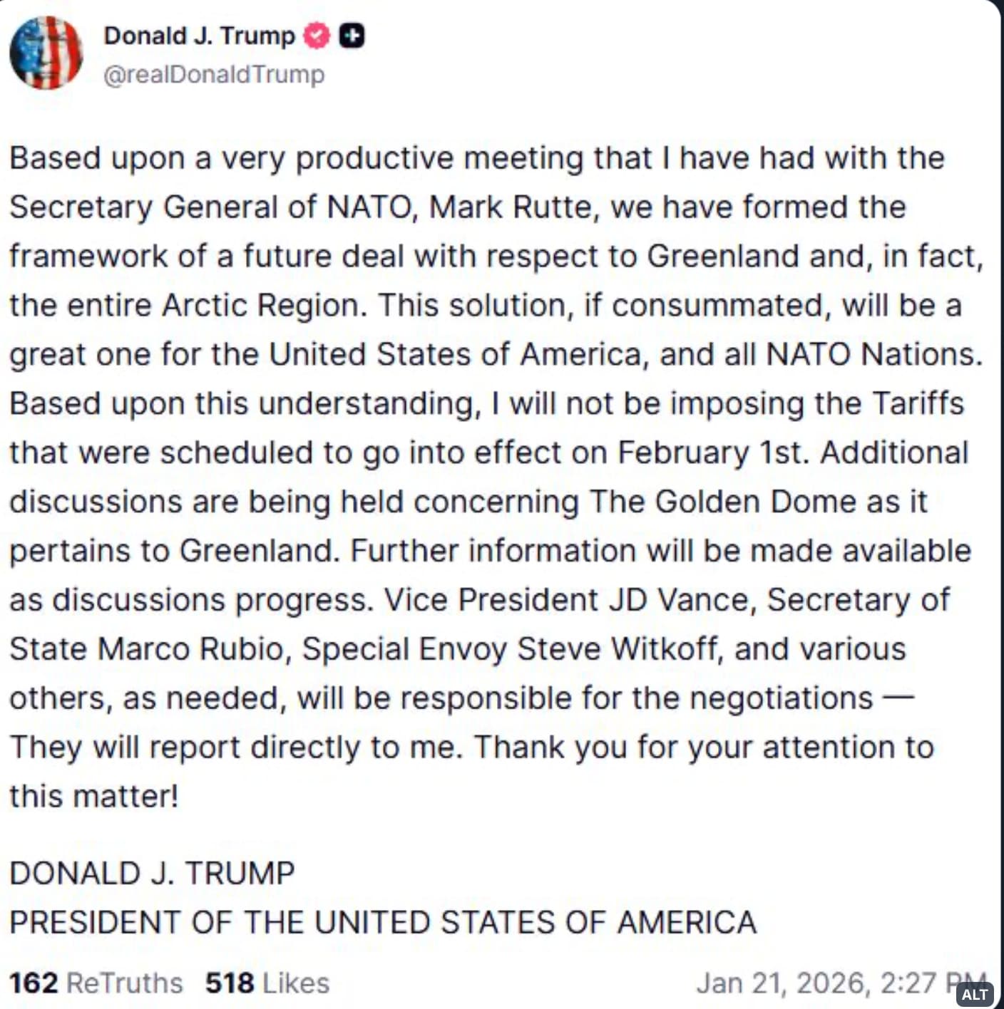 You are right test_user, this is the end of the discussion for now since Trump say a framework deal has been reached with NATO for Greenland.