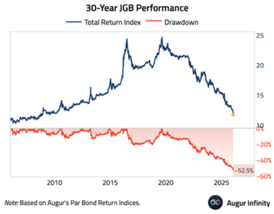 I think Japanese bonds recently had a 50% drawdown so many are still wary of holding them. The short term bonds and medium term bonds are still yielding less than inflation, but the very long term ones are now starting to have real yields