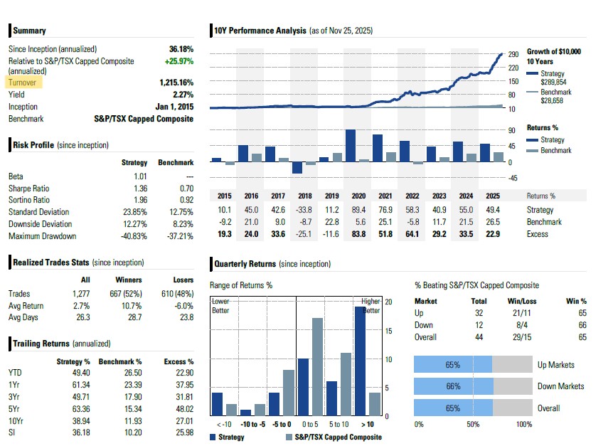 I think its the rebalancing each week that is causing the high turnover number. In my real money portfolio I don’t reblance each week. Is there a way to replicate this behaviour in the strategy settings.